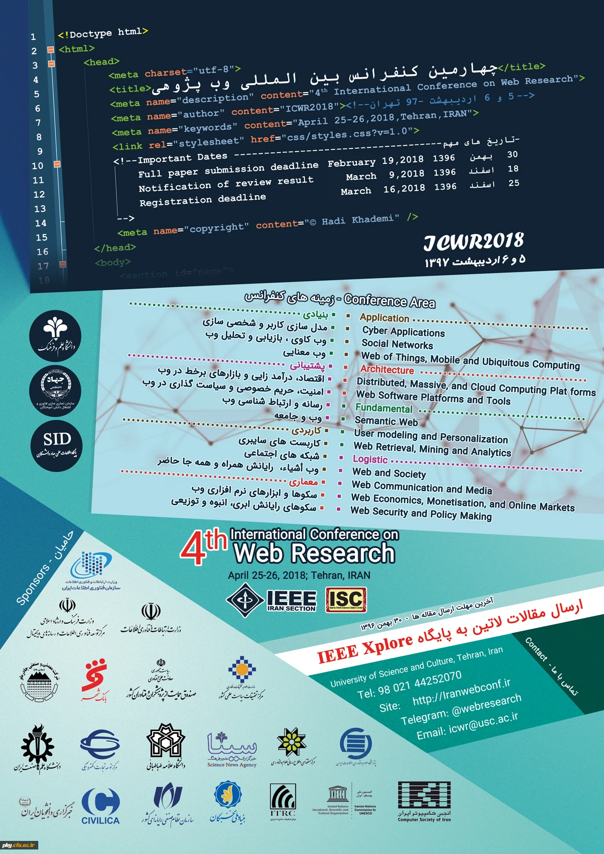 امتیاز دهید : فراخوان مقاله در «چهارمین کنفرانس بین المللی وب پژوهی» 2 یکشنبه 6 اسفند 1396 ساعت 15:07
