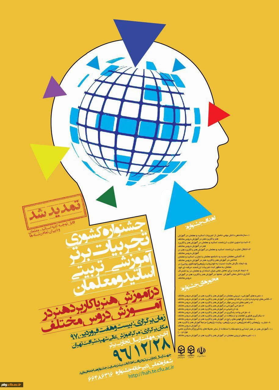 فراخوان مقاله در «جشنواره کشوری تجربیات برتر آموزشی-تربیتی اساتید و معلمان در آموزش هنر یا کاربرد هنر در آموزش دروس مختلف» 2