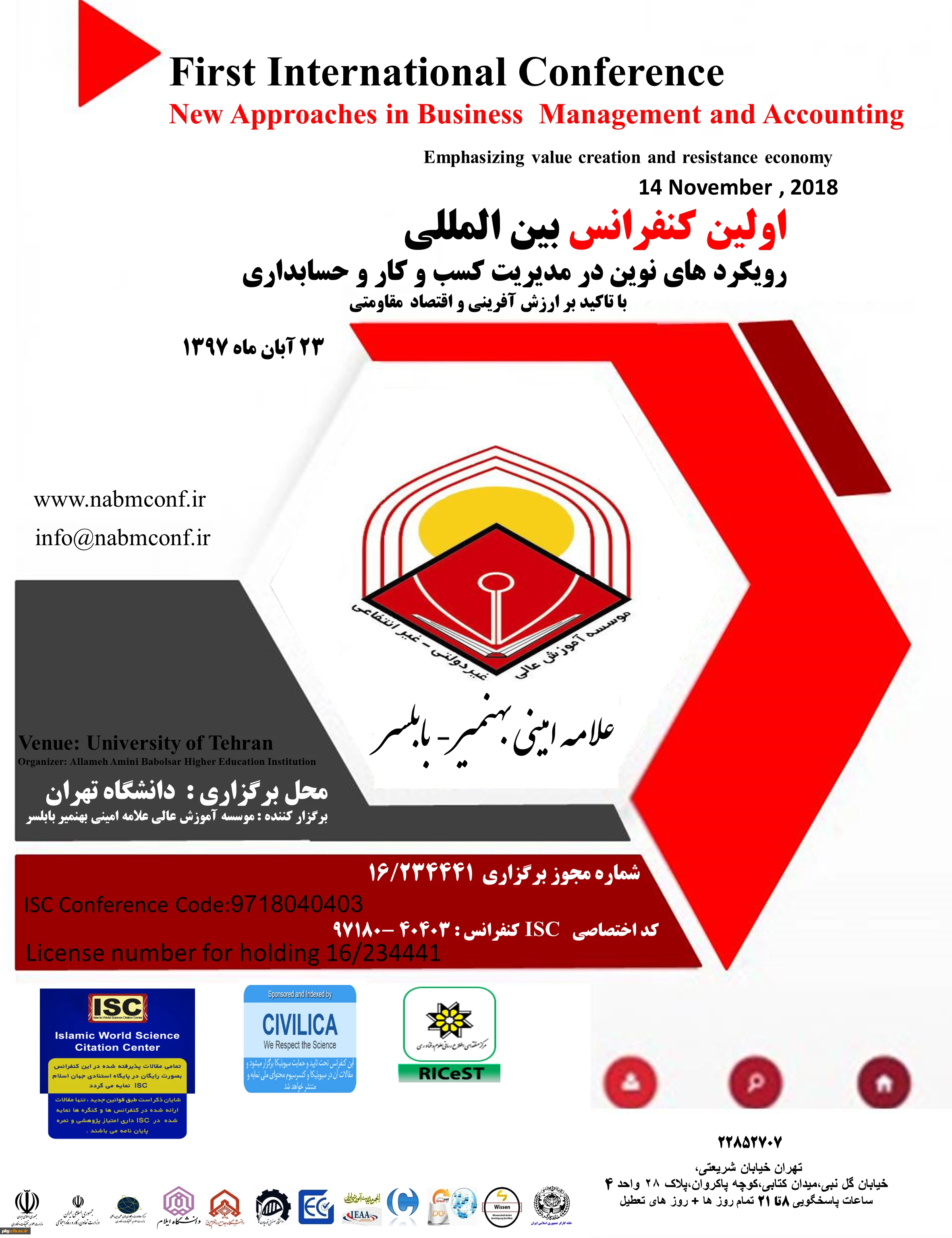 فراخوان مقاله در «اولین کنفرانس بین المللی رویکردهای نوین در مدیریت کسب و کار و حسابداری با تاکید بر ارزش آفرینی و اقتصاد مقاومتی» 2