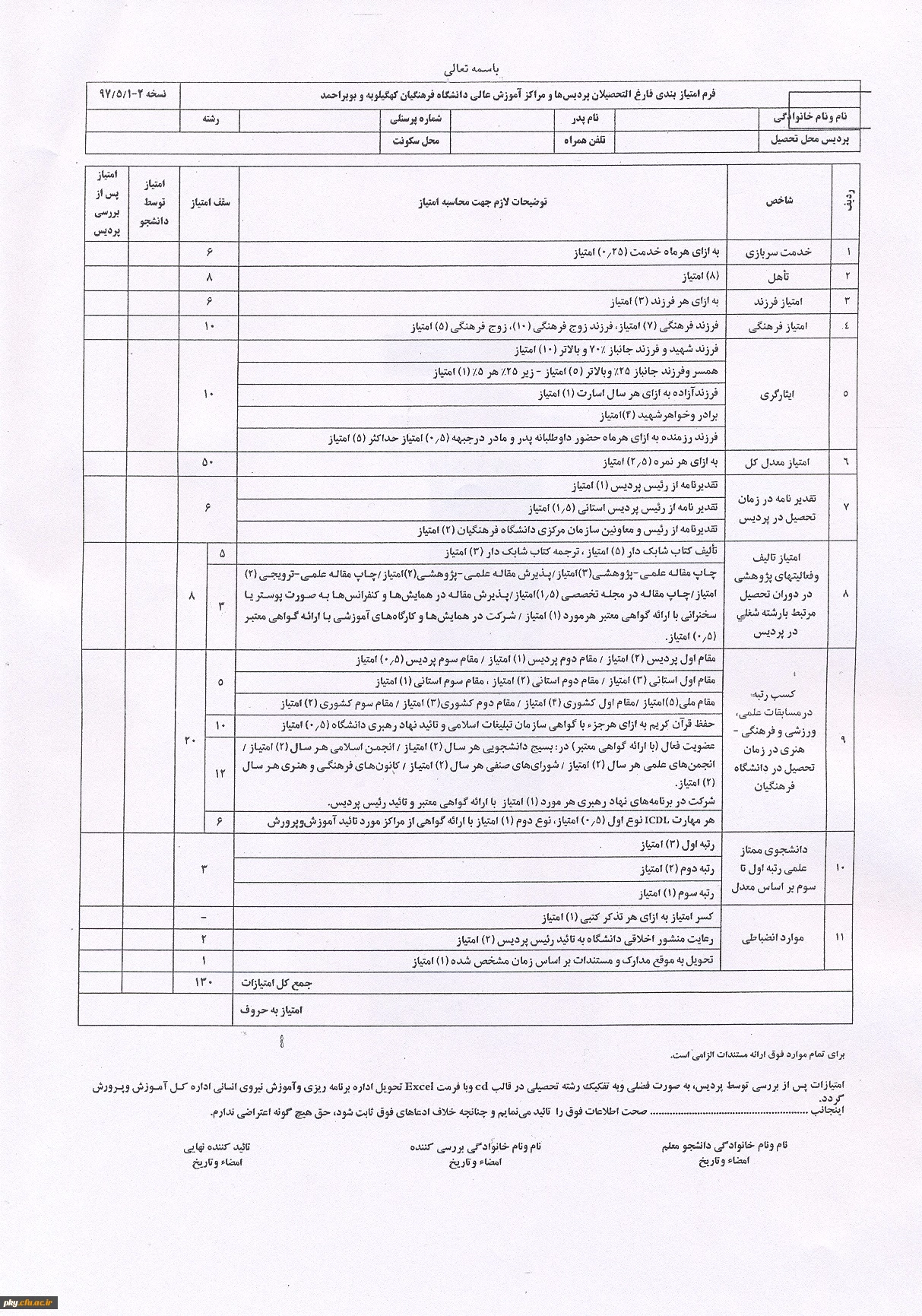 فرم امتیازبندی فارغ التحصیلان ورودی 1393 2