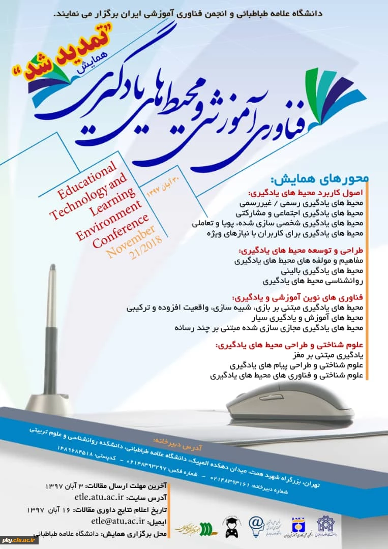 امتیاز دهید : فراخوان مقاله در « همایش ملی فناوری آموزشی ومحیط های یادگیری» 2 چهارشنبه 11 مهر 1397 ساعت 13:23