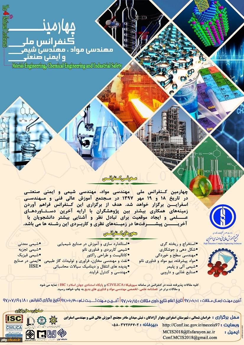 امتیاز دهید : فراخوان مقاله در « چهارمین کنفرانس ملی مهندسی مواد، شیمی و ایمنی صنعتی» 2 چهارشنبه 11 مهر 1397 ساعت 13:24