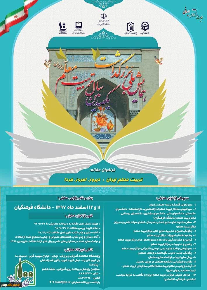 فراخوان مقاله و شرکت در همایش ملی بزرگداشت یکصدمین سال تربیت معلم در ایران تربیت معلم ایران: دیروز، امروز، فردا 2