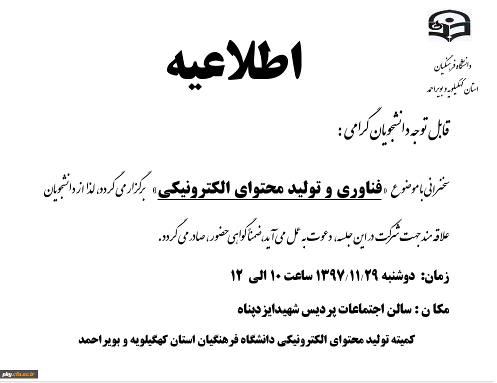 قابل توجه دانشجومعلمان گرامی فراخوان شرکت در سخنرانی با موضوع «فناوری و تولید محتوای الکترونیکی» 2