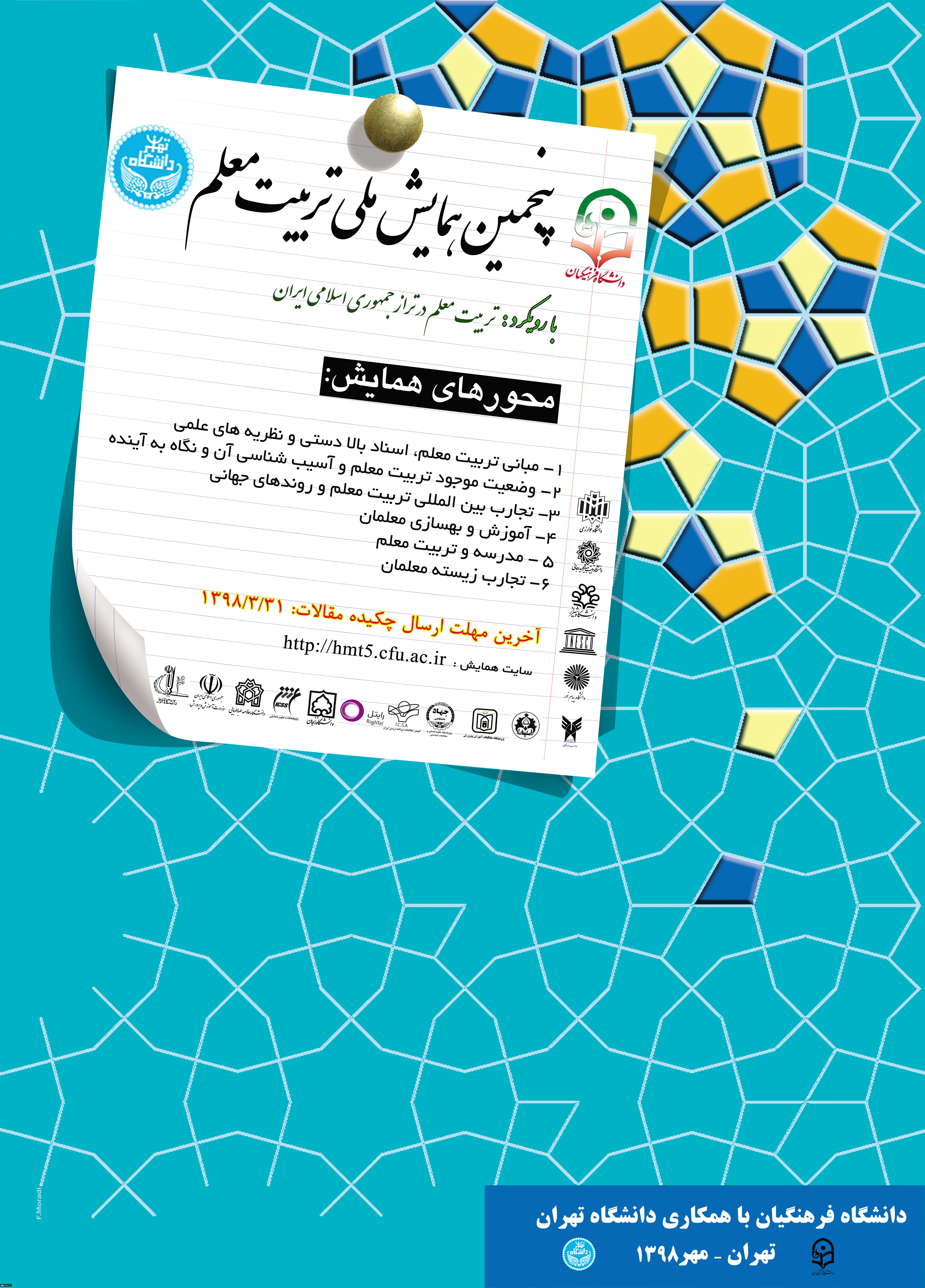 امتیاز دهید : فراخوان مقاله در پنجمین همایش ملی تربیت معلم در ایران 2 دوشنبه 30 اردیبهشت 1398 ساعت 11:10