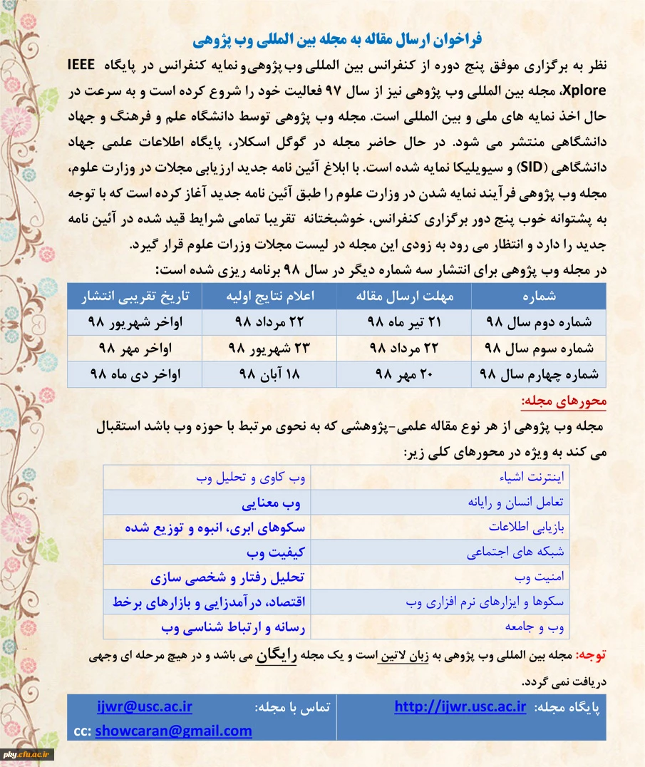فراخوان ارسال مقاله به مجله بین المللی وب پژوهی 2