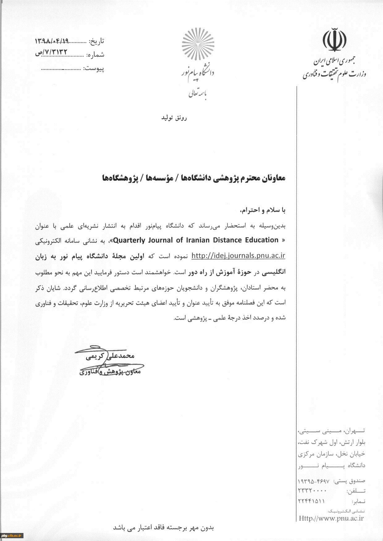 فراخوان مقاله در فصلنامه علمی Quarterly Journal of Iranian Distance Education 2