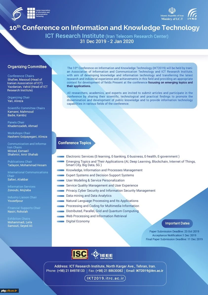 امتیاز دهید : فراخوان مقاله دهمین کنفرانس فناوری اطلاعات و دانش IKT 2019 2 شنبه 14 دی 1398 ساعت 21:49