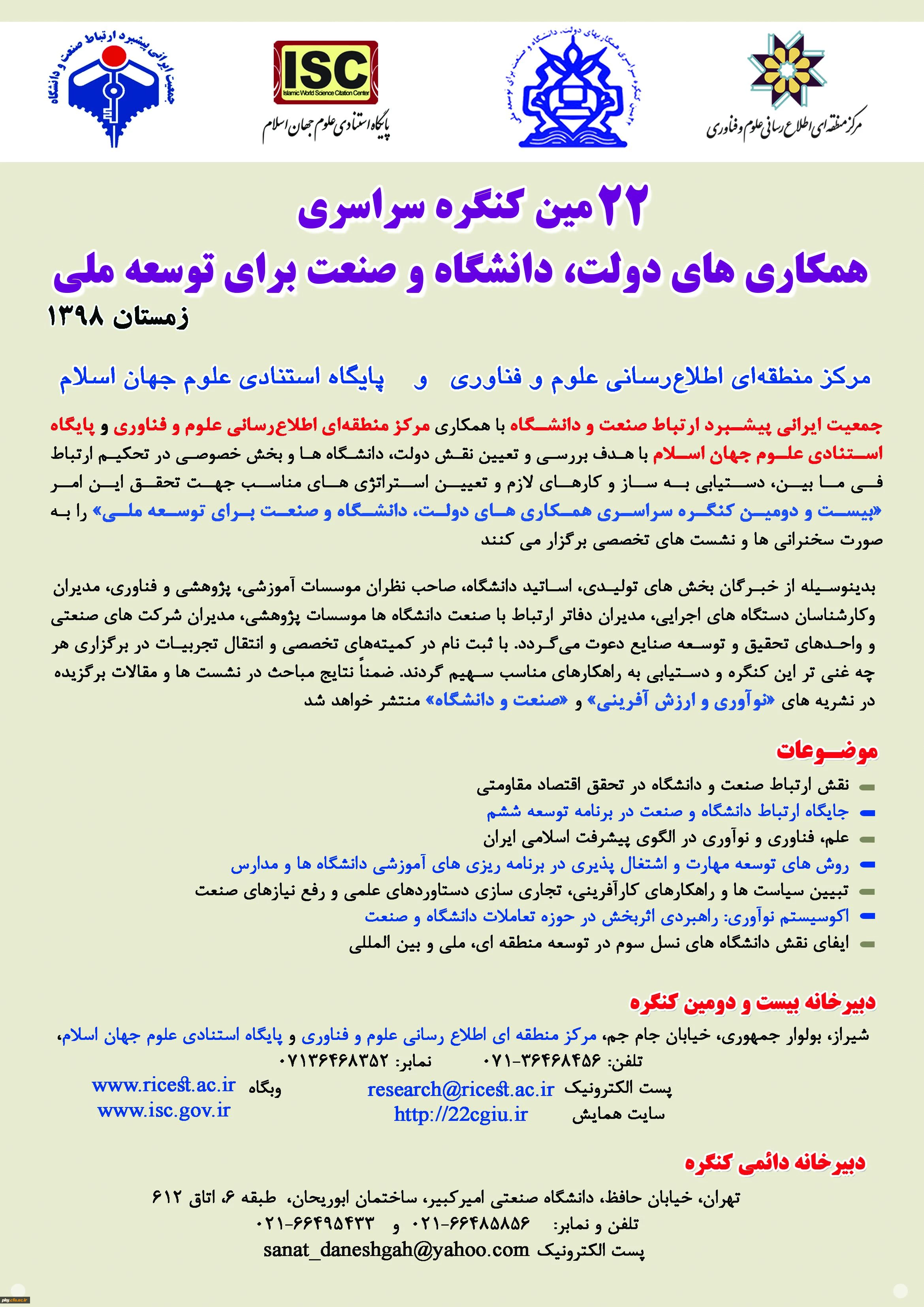 فراخوان مقاله در «بیست و دومین کنگره سراسری همکاری های دولت، دانشگاه و صنعت برای توسعه ملی» 2