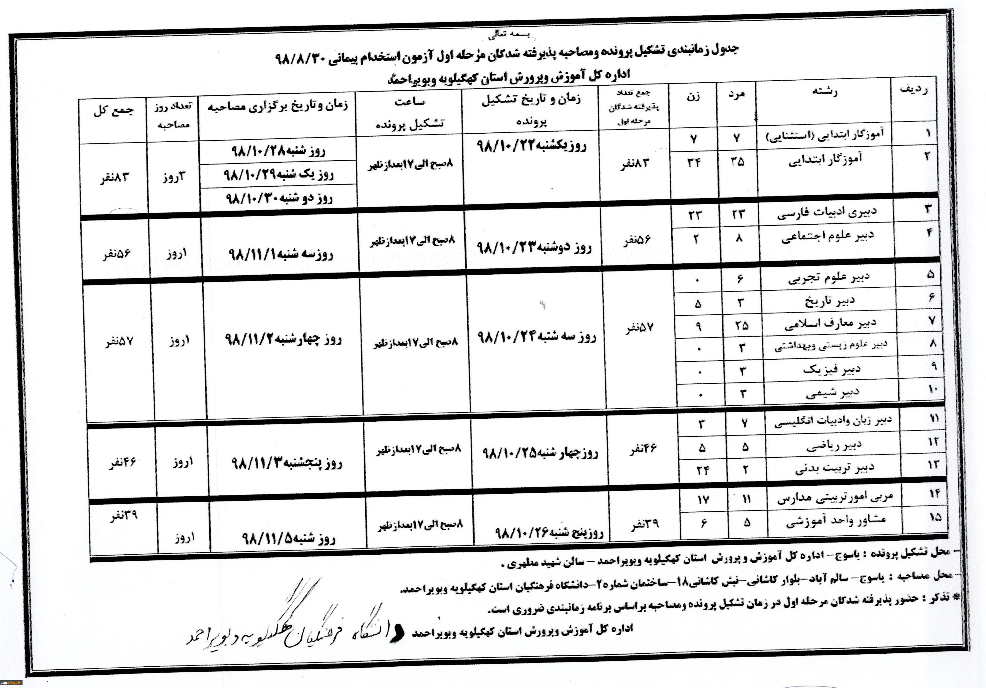 اعلام جدول زمان بندی تشکیل پرونده و مصاحبه 2