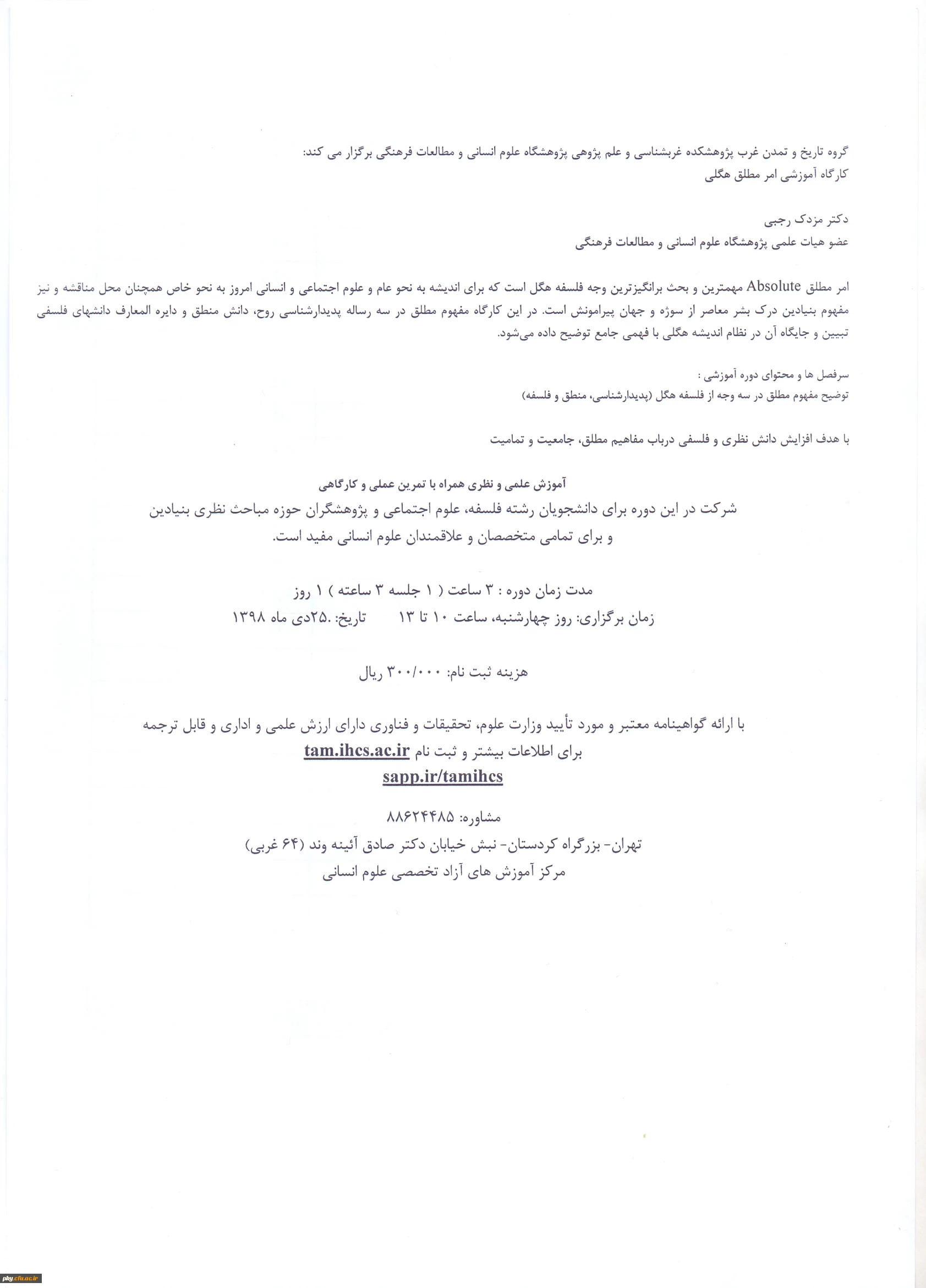 فراخوان شرکت در کارگاه آموزشی امر مطلق هگل 3