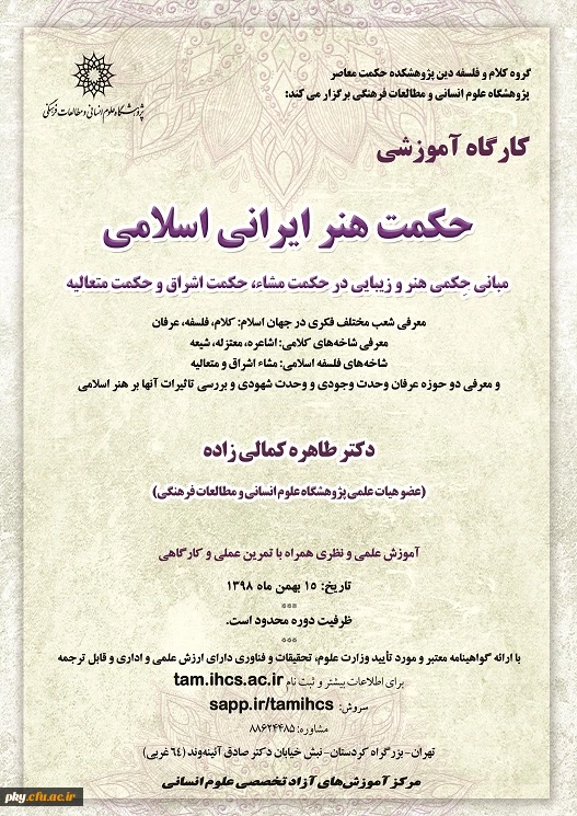 امتیاز دهید : فراخوان شرکت در کارگاه آموزشی «حکمت هنر ایرانی اسلامی» 2 دوشنبه 14 بهمن 1398 ساعت 10:33