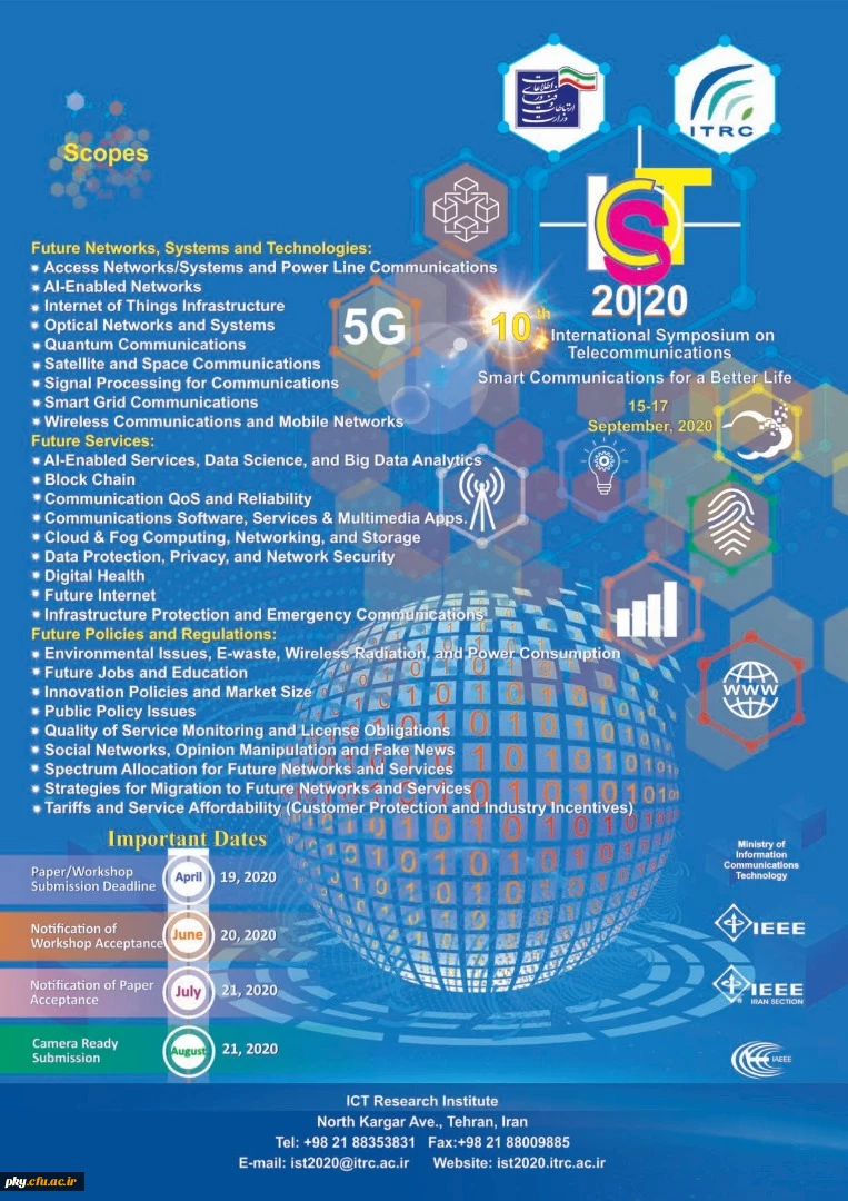 امتیاز دهید : فراخوان مقاله در « دهمین سمپوزیوم بین المللی مخابرات» 2 چهارشنبه 16 بهمن 1398 ساعت 14:39